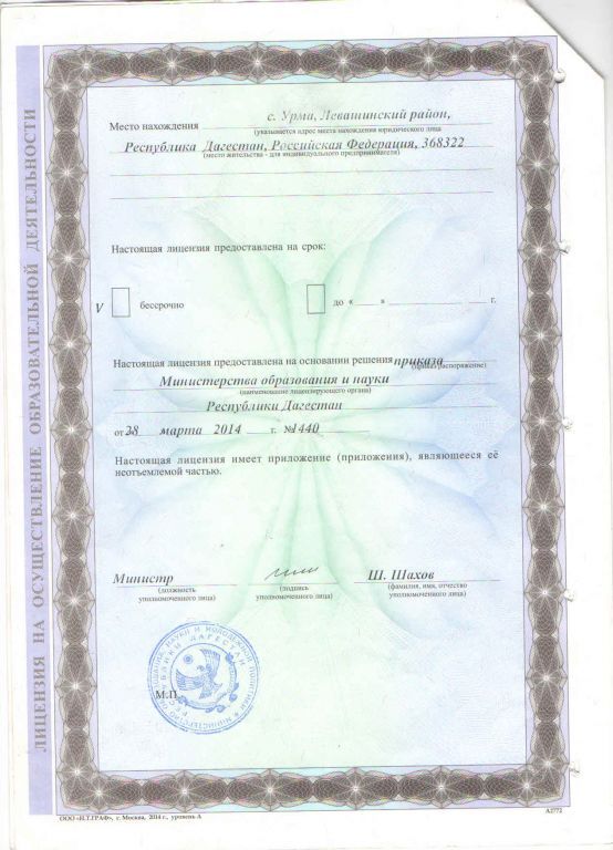 Адрес местонахождения образовательной организации* 368322, Республика Дагестан, Левашинский район, с. Урма ул. Далгата Далгатова д.22