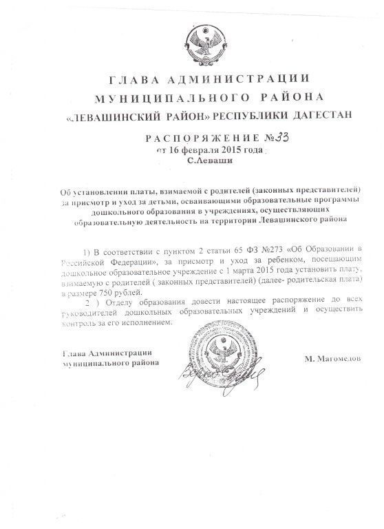 Документ об установлении размера платы, взимаемой с родителей (законных представителей)